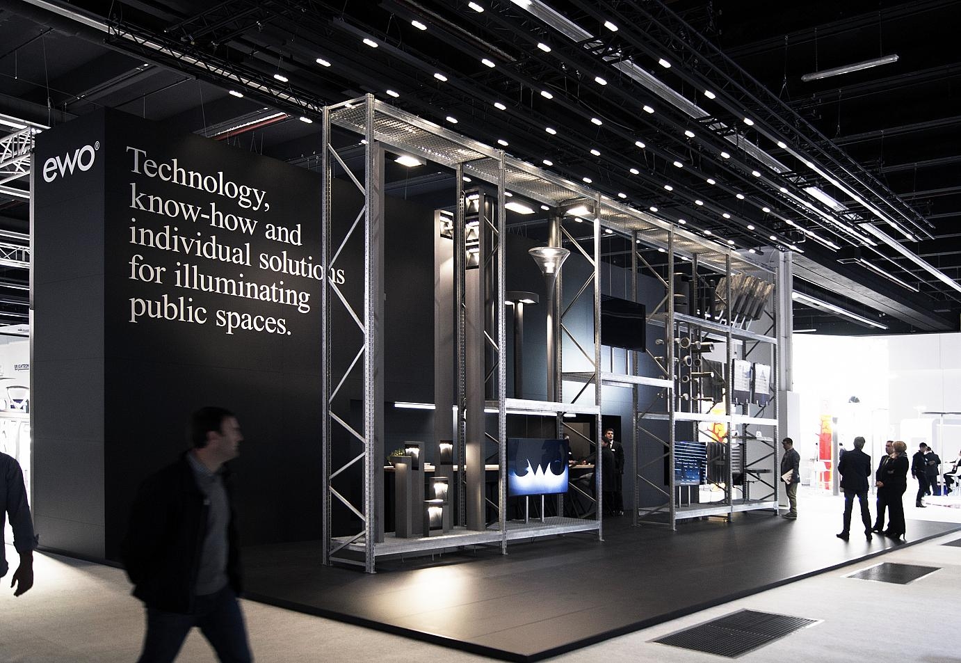 Für ewo hat Studio von Monkiewitsch eine Reihe unterschiedlicher Clips für die Bereiche Individual, Proficient und LED entwickelt. Hinzu kamen das Grafikkonzept und die Bespielung für den EWO Messestand zur Light and Building 2014.